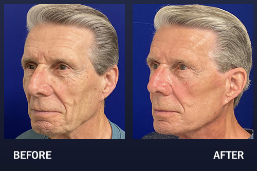 60-year-old patient 6 months after Facelift, Neck lift, and Buccal Fat Removal.