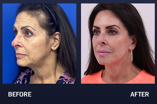 61 year old patient 4 months after a NaturaLyft™ with Dr. Madnani. She underwent a facelift, neck lift, brow lift, upper blepharoplasty, facial fat transfer and laser skin resurfacing.