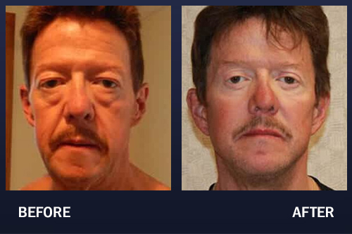 My patient had recently undergone weight loss surgery and lost 145lbs. He felt his face had fallen after the weight loss. Here he is 2 months post Face lift, Neck lift, Fat Transer to the cheeks, tear trough (under eyes), nasolabial and marionette lines, subciliary lower eyelid blepharoplasty and upper eyelid blepharoplasty