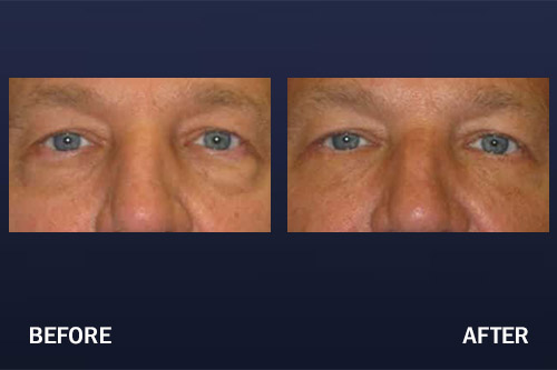The patients eyelids were treated via a subciliary (external) approach, takes about 60 minutes and is performed under local anesthesia